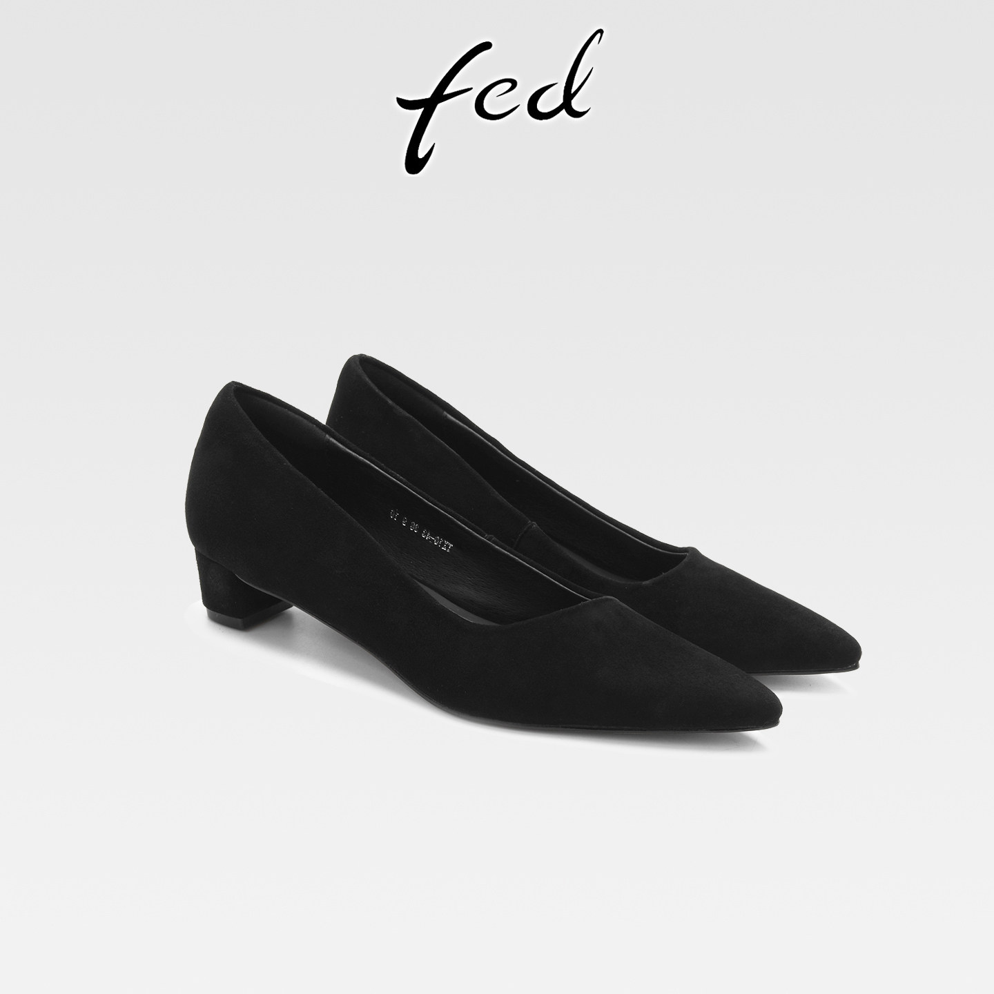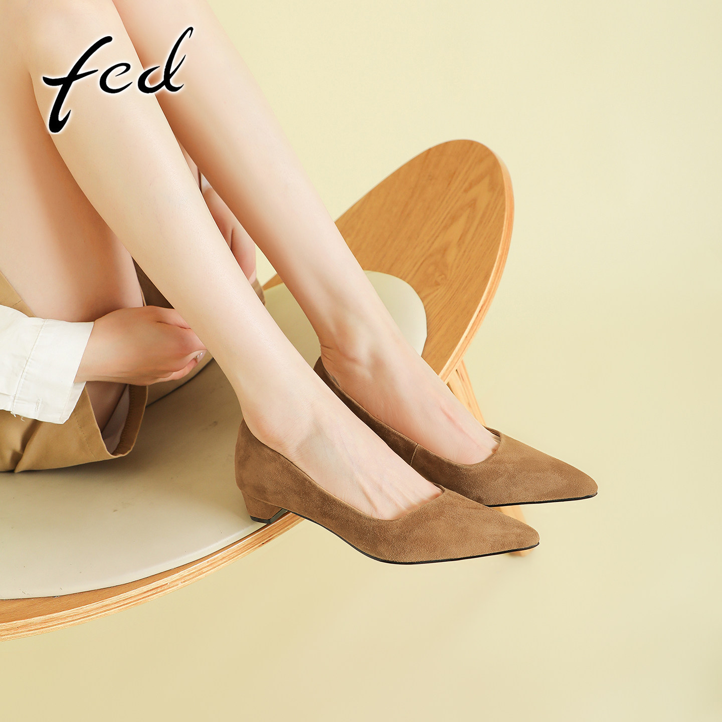 fed复古羊反绒粗跟通勤工作鞋女春秋新款一脚蹬中跟尖头浅口单鞋