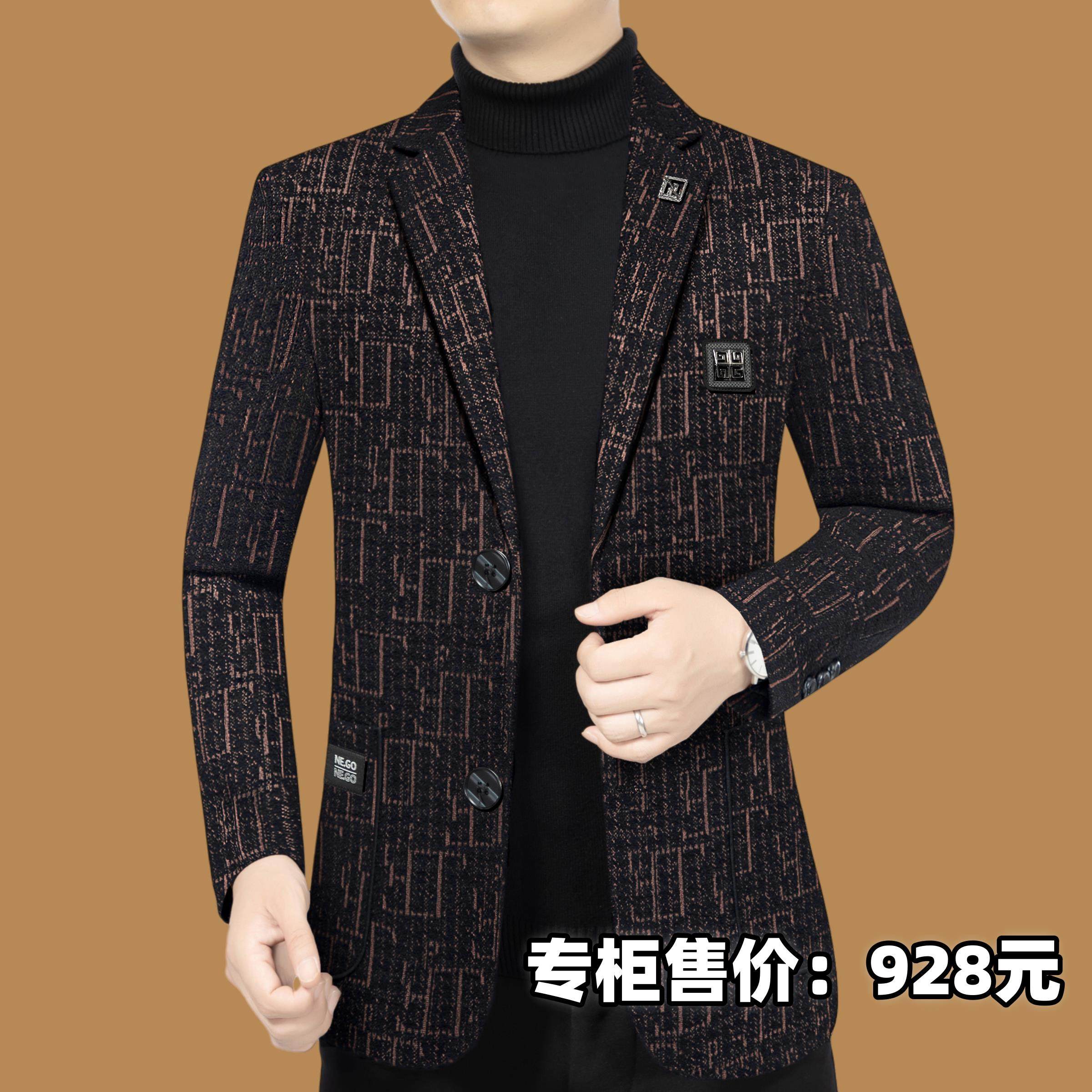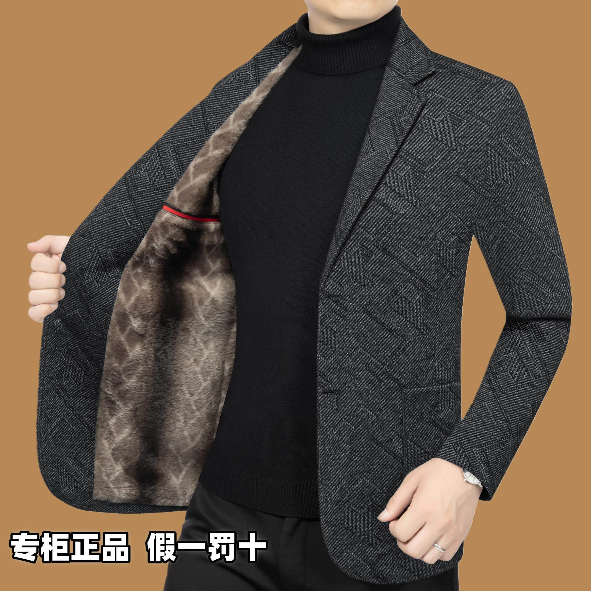 皮尔卡丹加绒加厚西服秋冬季西装