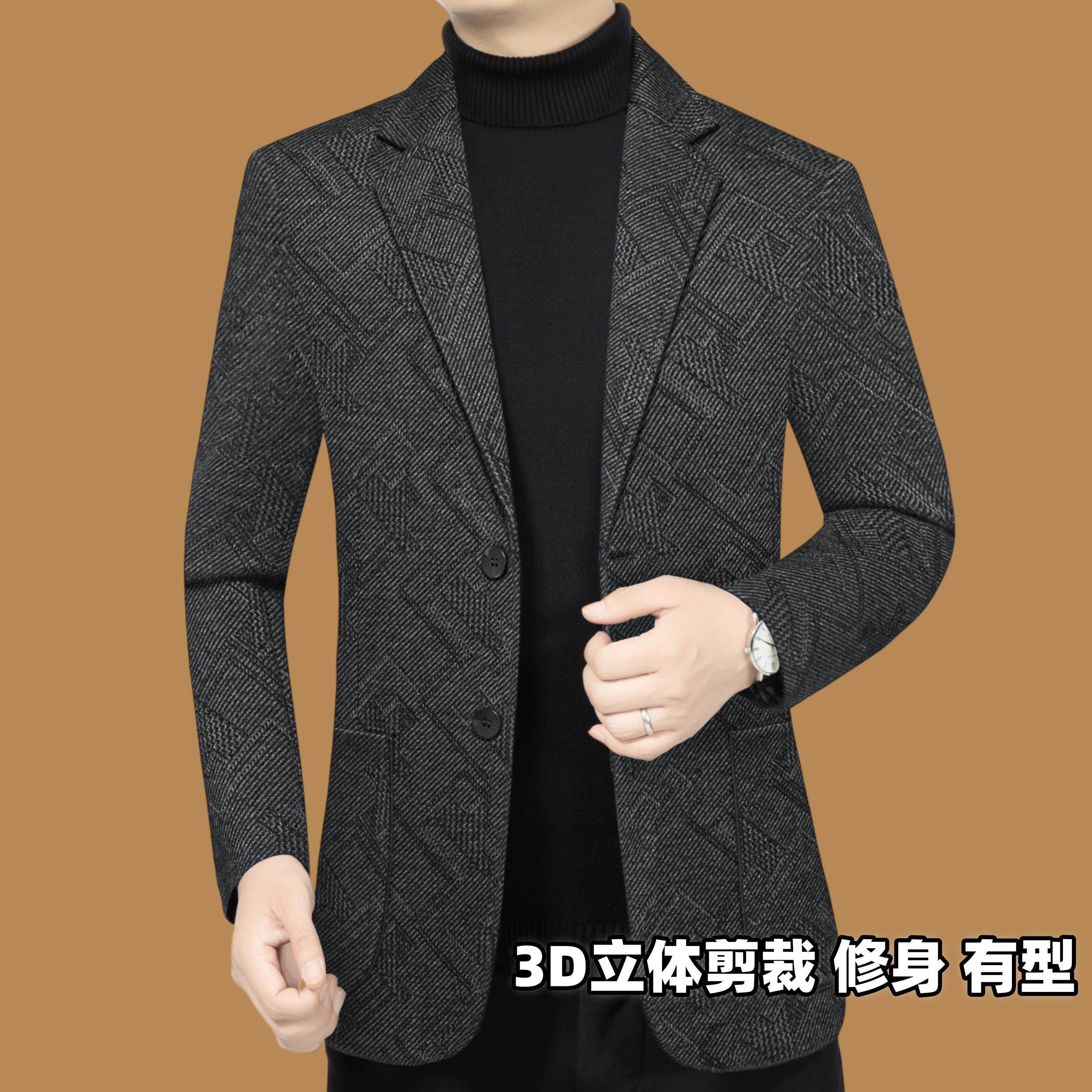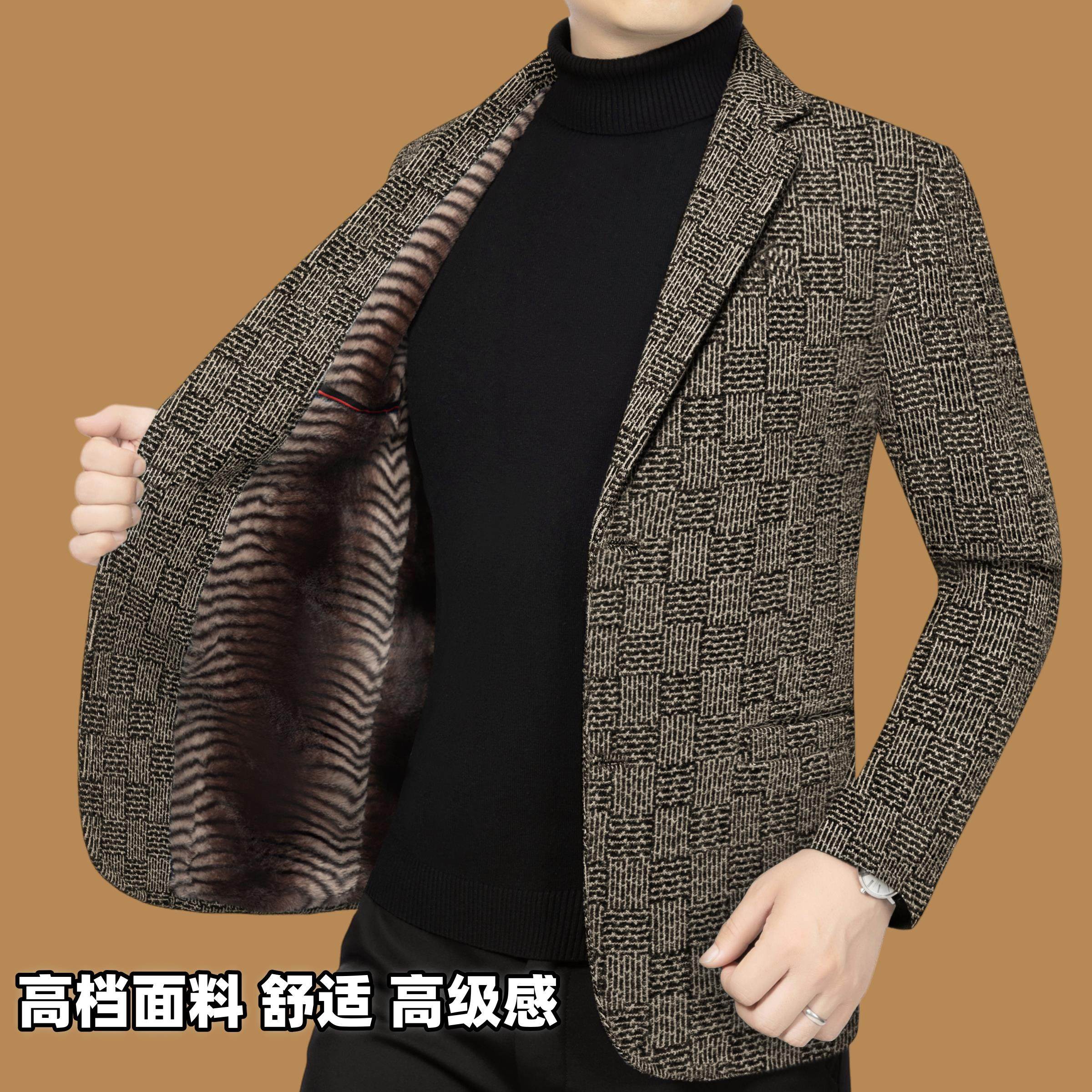 皮尔卡丹男装冬季新款加绒加厚商务休闲西装男士外套爸爸保暖西服