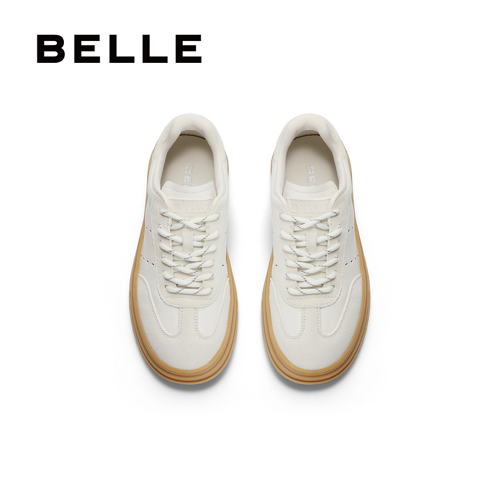 百丽女鞋子复古厚底德训鞋25春季新款运动休闲小白板鞋B2462AM5