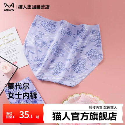 猫人女士内裤2025新款莫代尔中腰无痕裸感透气舒适包臀印花三角裤