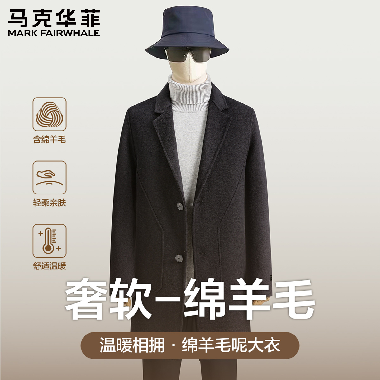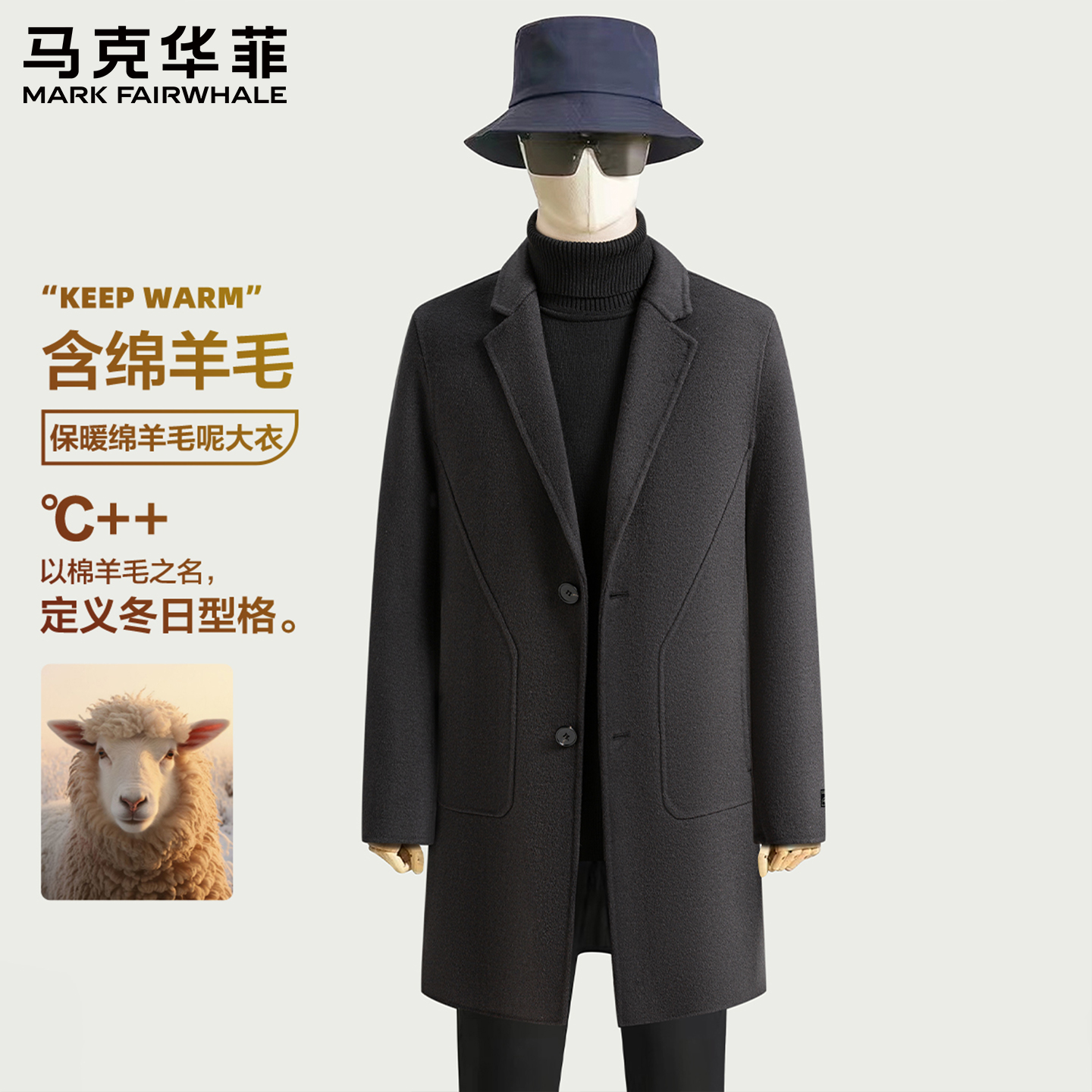 马克华菲绵羊毛男士大衣