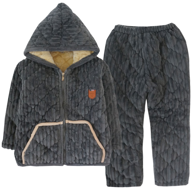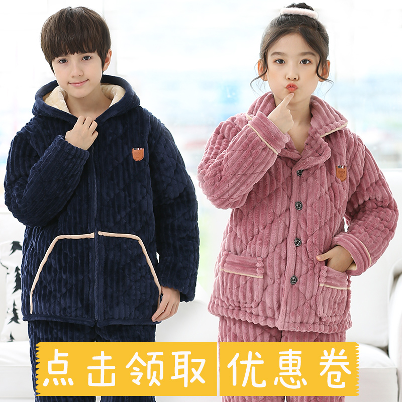 冬季儿童睡衣法兰绒男孩女童三层夹棉加厚珊瑚绒中大童亲子家居服