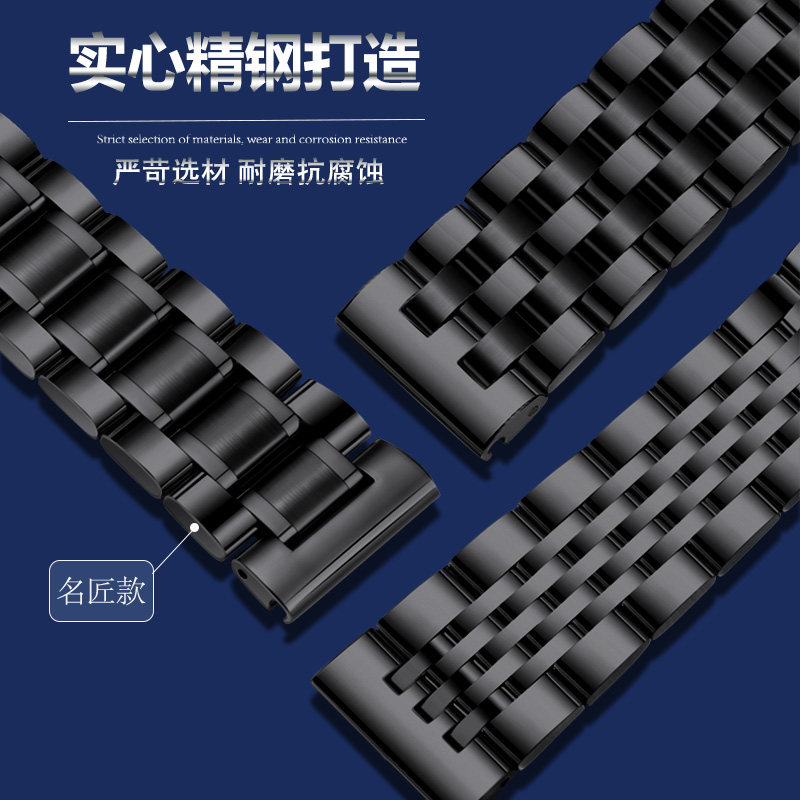 适配阿玛尼黑武士表带钢带男