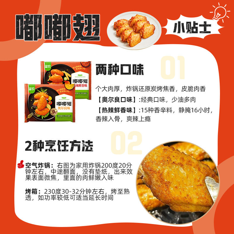 圣农嘟嘟翅鸡翅中热辣鲜香烤鸡翅中冷冻半成品空气炸锅生鲜食材
