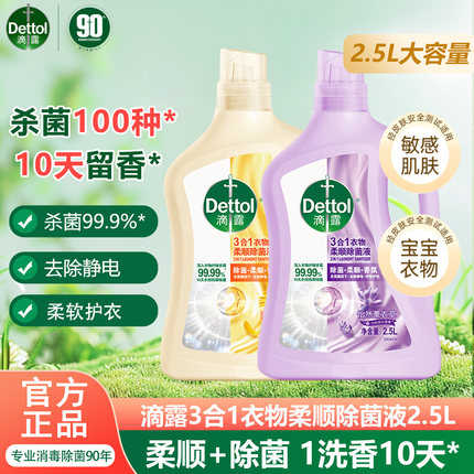 滴露香氛衣物柔顺剂除菌液2.5L有效杀菌除螨护衣留香洗衣非消毒液