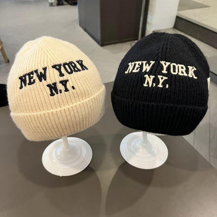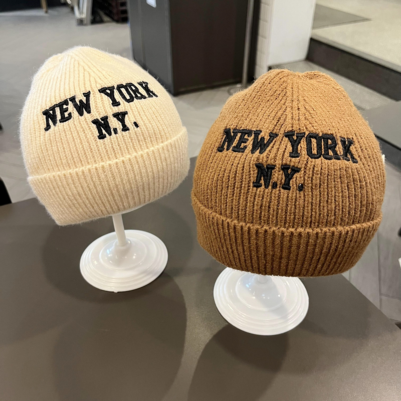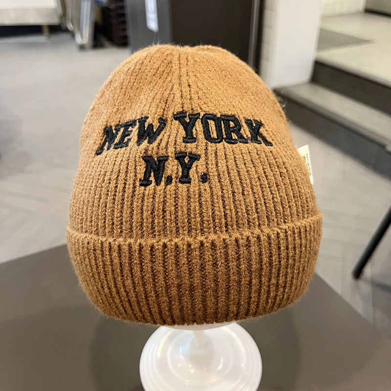 婴儿护耳帽保暖字母针织套头帽男女宝宝毛线帽防风百搭帽子秋冬款