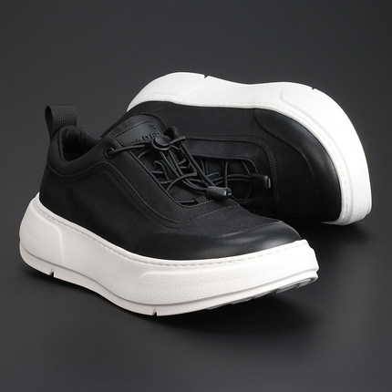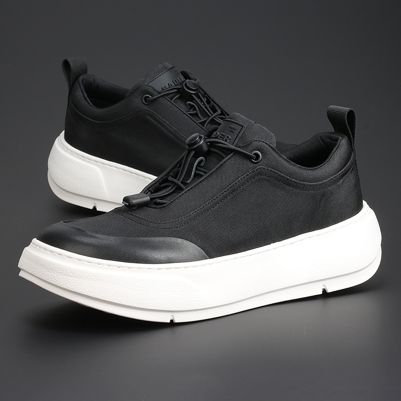 新款透气帆布鞋厚底增高黑色轻便低帮板鞋潮流百搭耐磨男士休闲鞋