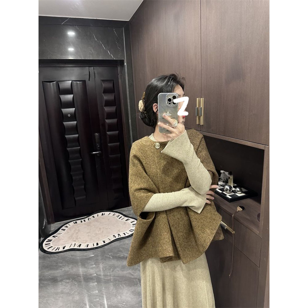 秋季新款时尚内搭连衣裙斗篷上衣两件套女小众法式轻奢高级套装