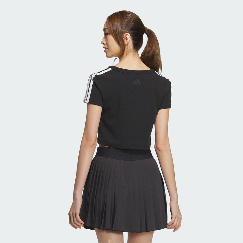adidas阿迪达斯25夏季女蝴蝶结短款运动短袖圆领T恤三条纹 JY7649