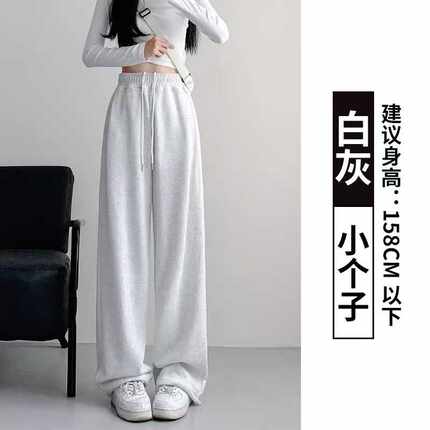 灰色运动裤女小个子2025秋冬松紧腰运动卫裤高腰垂感阔腿裤束脚裤