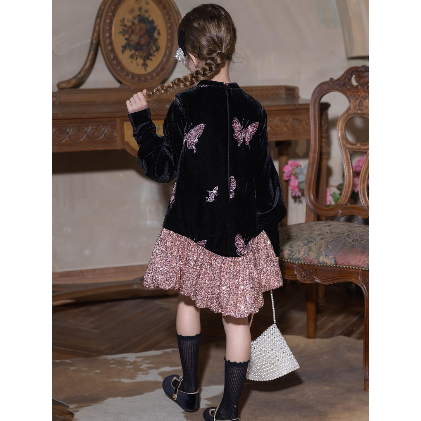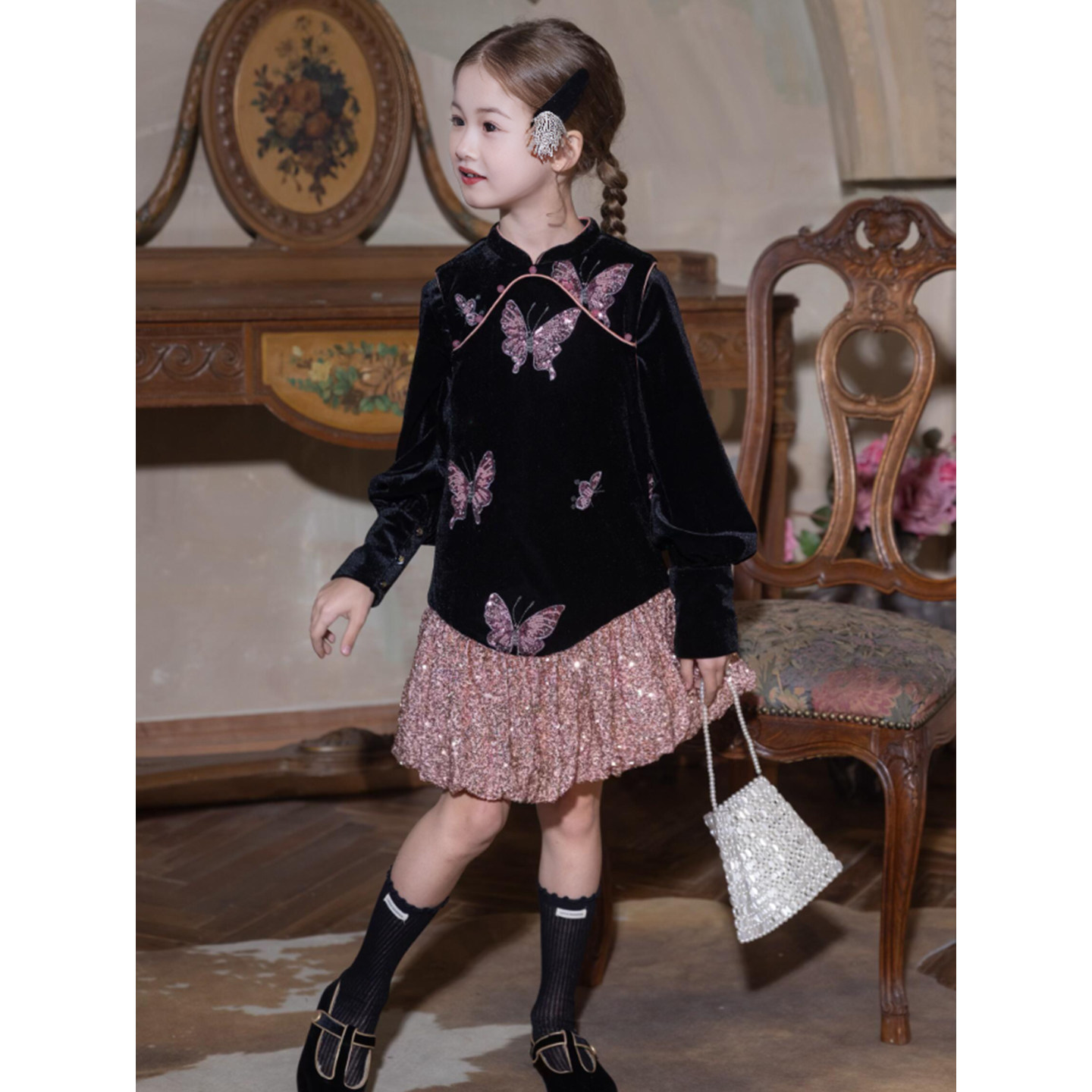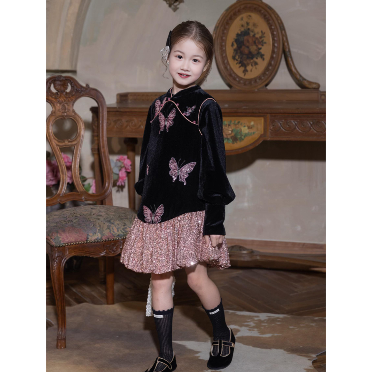 女童冬套装生日礼服连衣裙儿童加绒加厚花苞背心裙子迪士尼公主裙