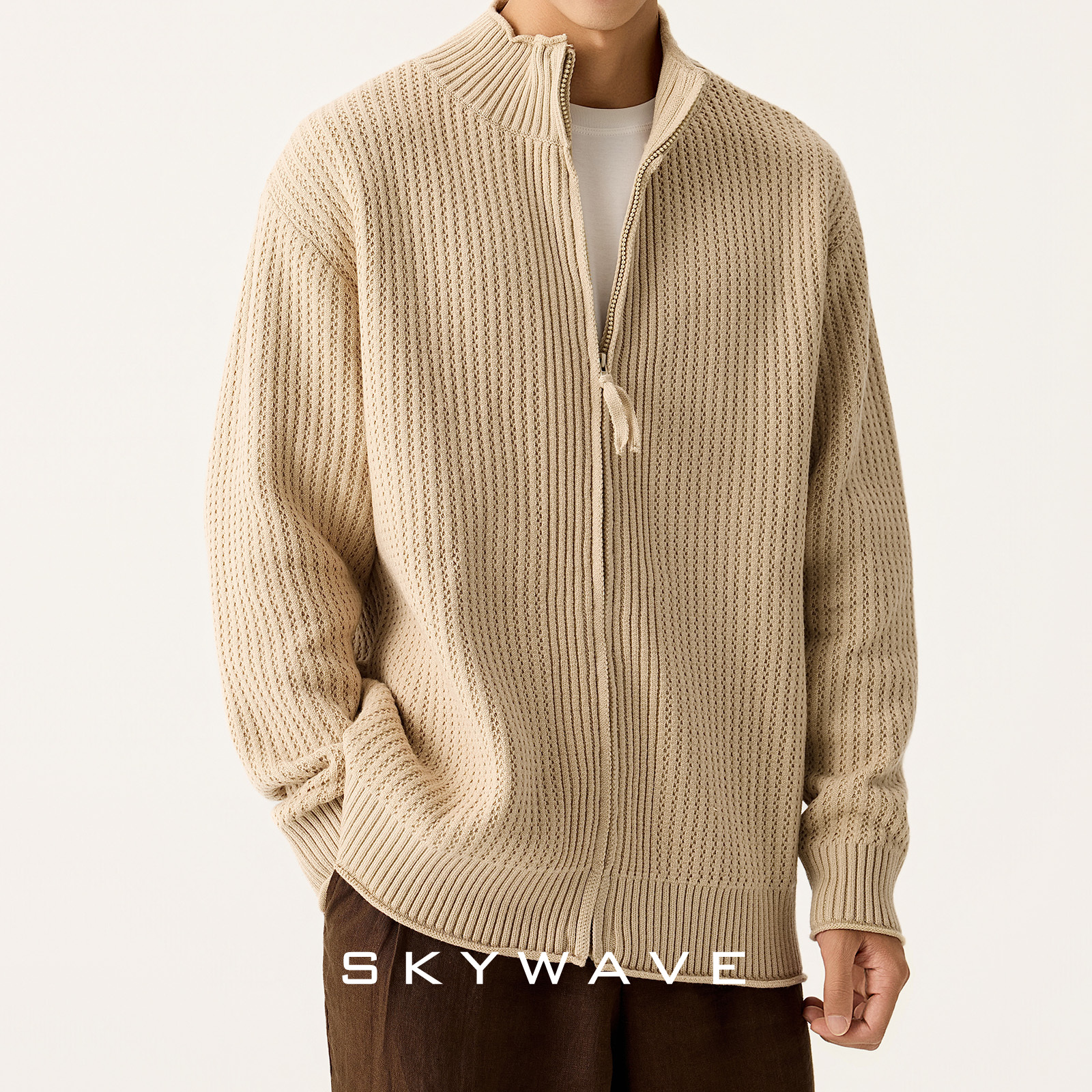 【竖条纹肌理】日系松弛感针织毛衣男士轻熟休闲宽松百搭开衫外套