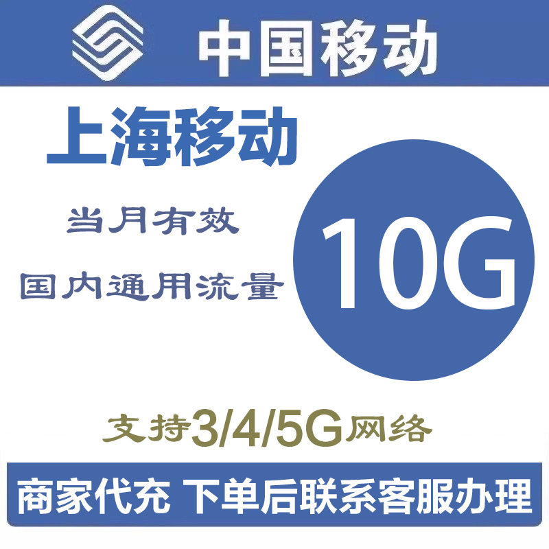 上海移动流量充值10G中国移动流量全国通用4G/5G 流量包当月有效