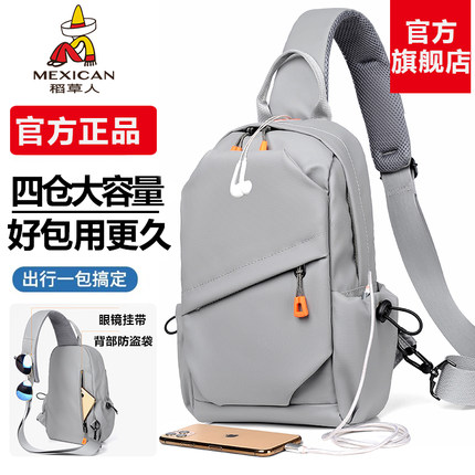 稻草人斜挎包男士大容量2025新款背包外出男款胸包户外通勤单肩包
