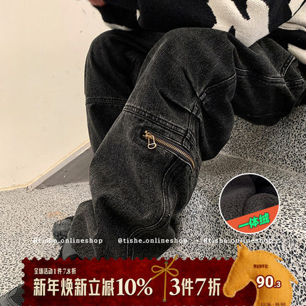 男童牛仔裤2025秋冬新款儿童长裤大童男孩潮牌青少年冬装薄绒裤子