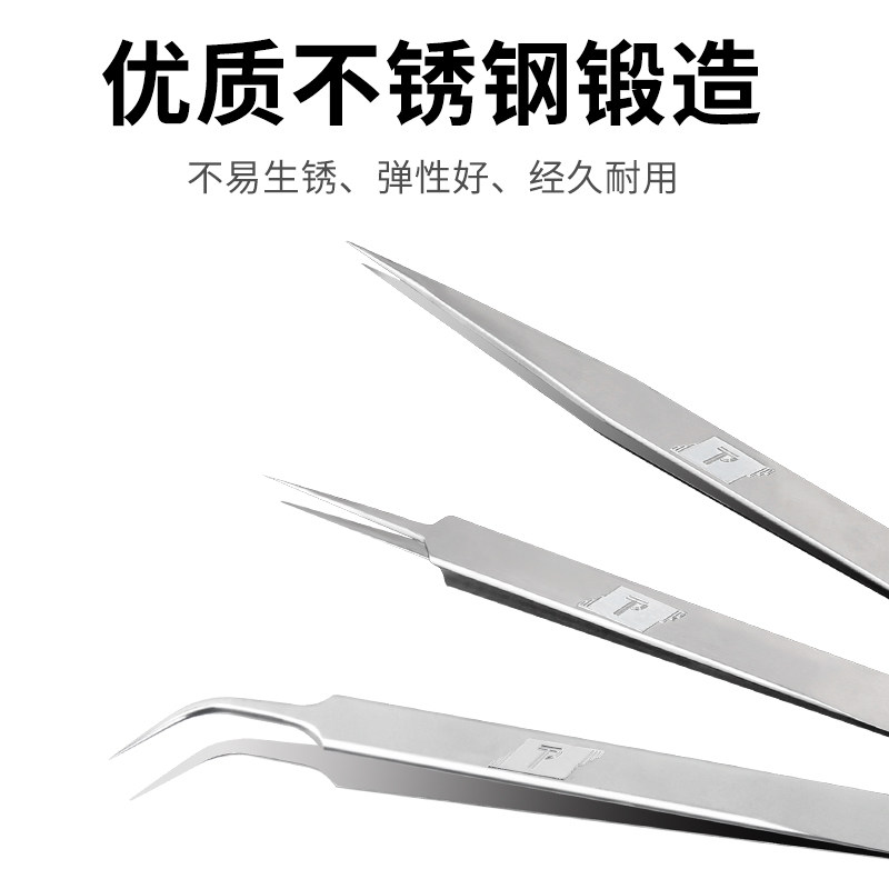 金卡思高精密加长不锈钢特尖镊子手机维修飞线工具加厚夹子弯尖头