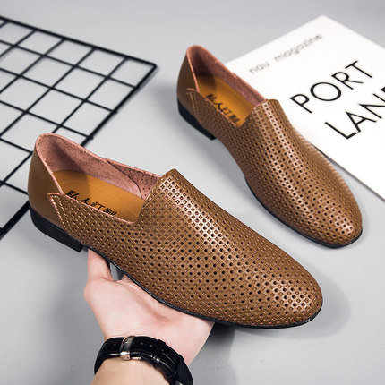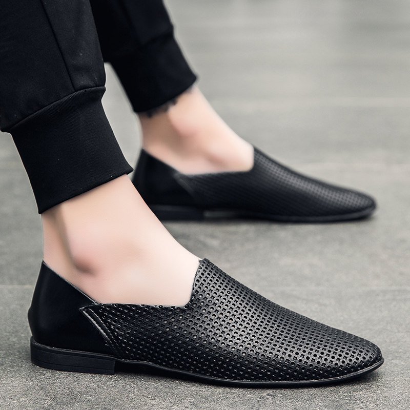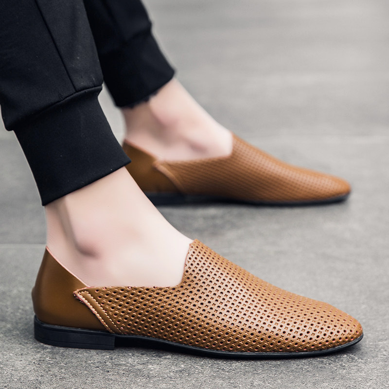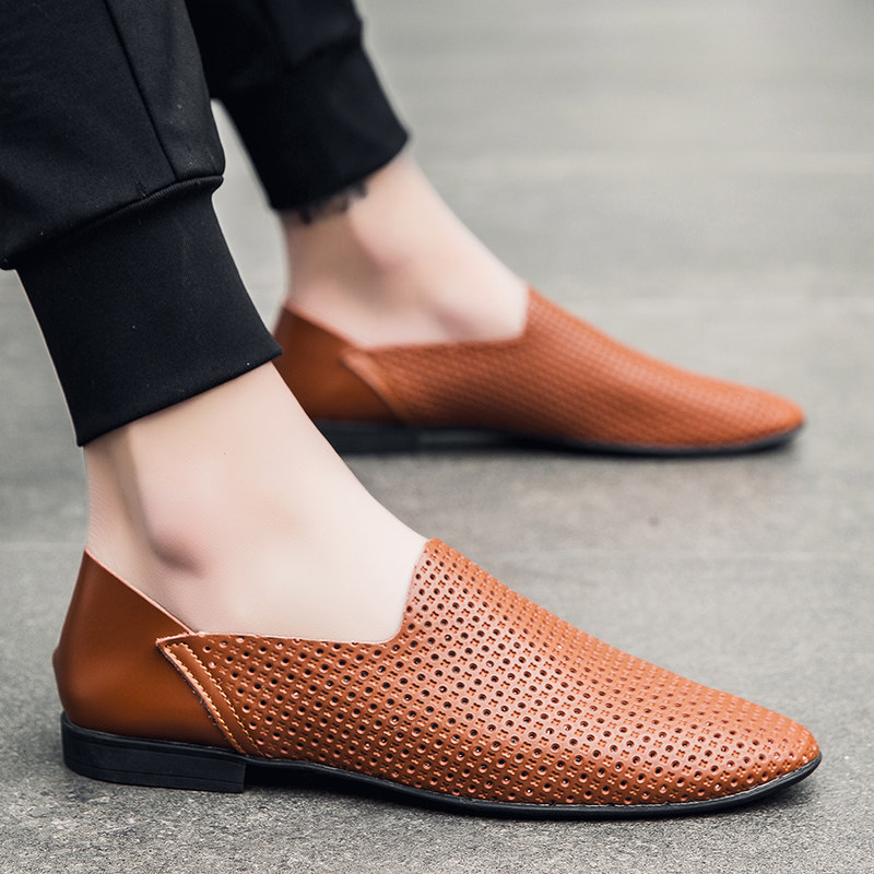 尖头休闲男皮鞋2025新款轻便软低真皮小码时尚潮流一脚蹬豆豆鞋男