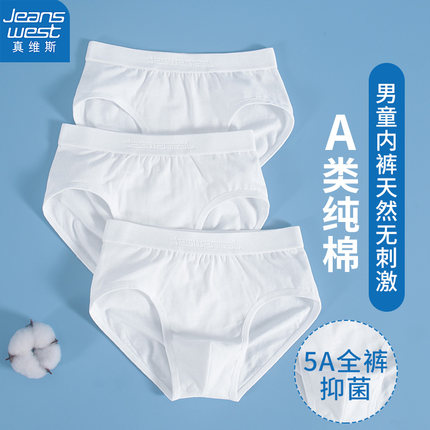 抑菌男童三角内裤白色纯棉A类儿童全棉短裤中大童男孩青少年纯色