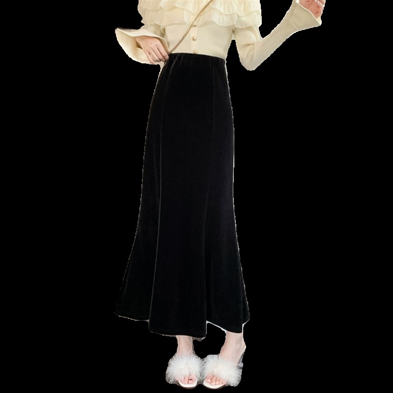 加厚裙子女秋冬半身裙2024新款加绒高腰半裙女丝绒长裙鱼尾包臀裙