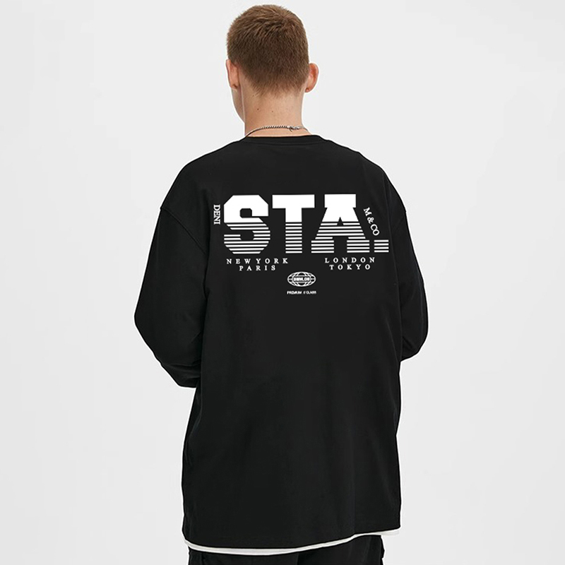 STA原创品牌线条小字母2025潮牌新款春秋纯棉打底长袖T恤上衣服