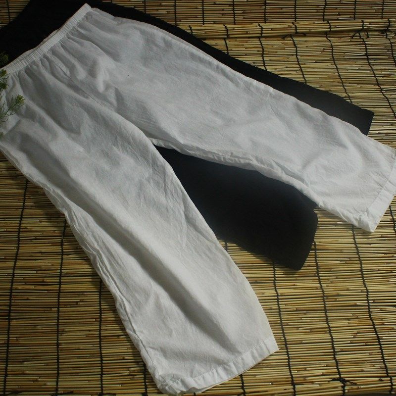 超软超薄纯棉家居裤白色打底女裤水洗全棉宽松直筒裤七分阔腿裤女