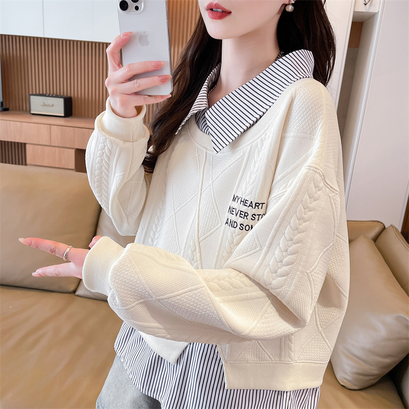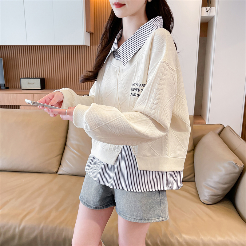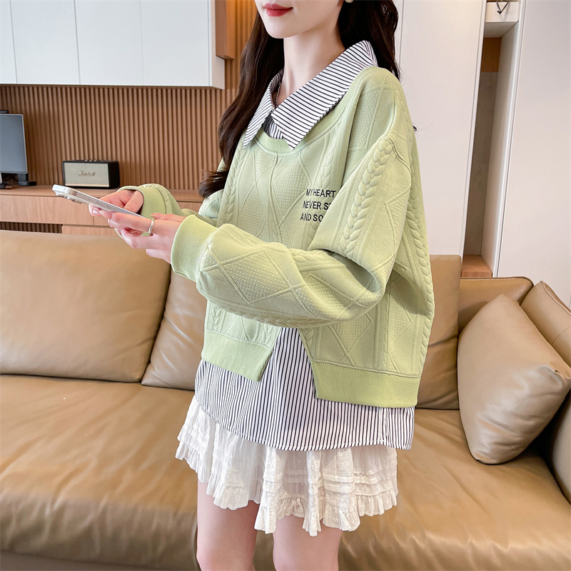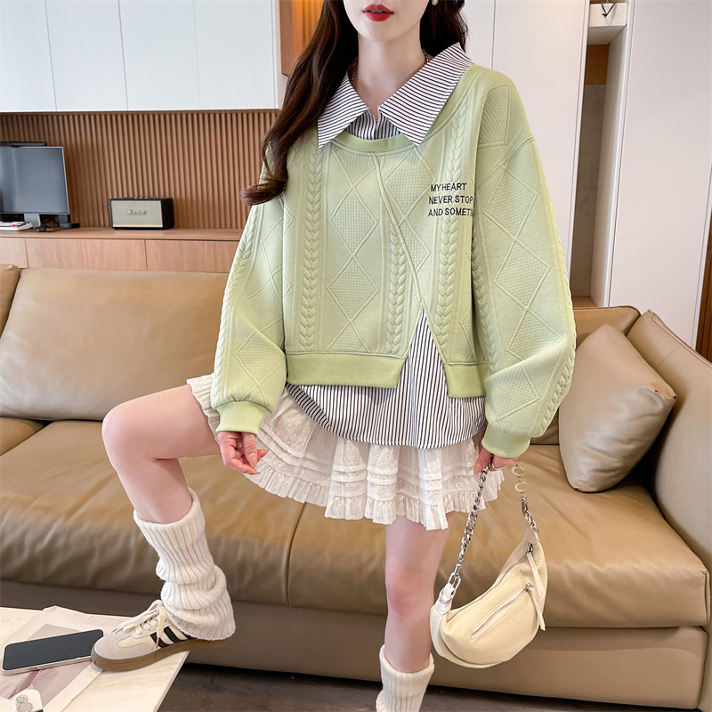 假两件衬衫领卫衣女春秋季2025新款宽松大码设计感polo领上衣外套