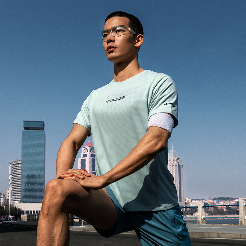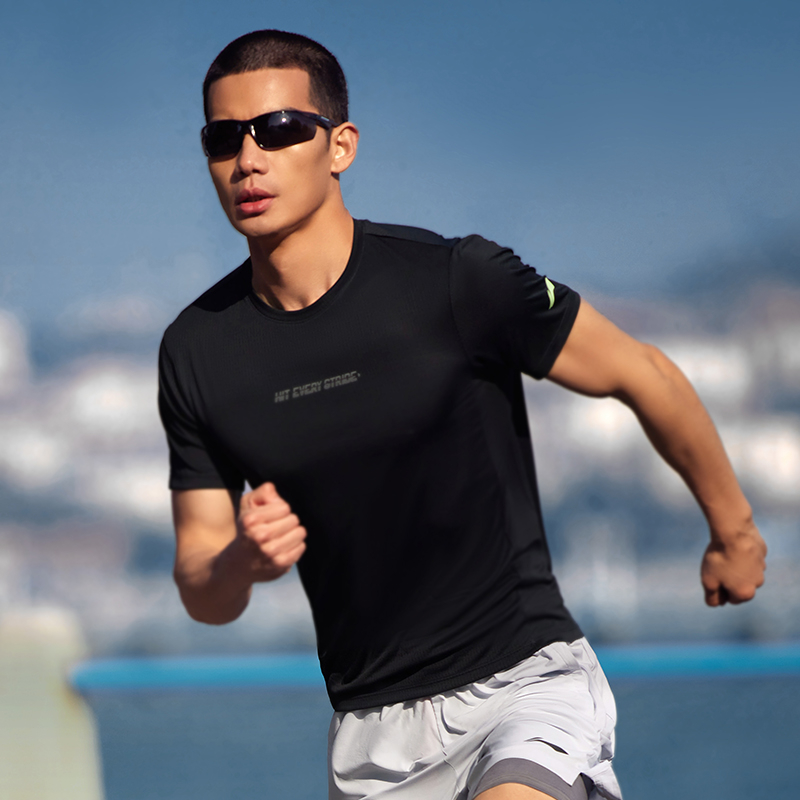 李宁男子速干短袖夏户外跑步系列轻薄透气运动短袖T恤ATST081-B品