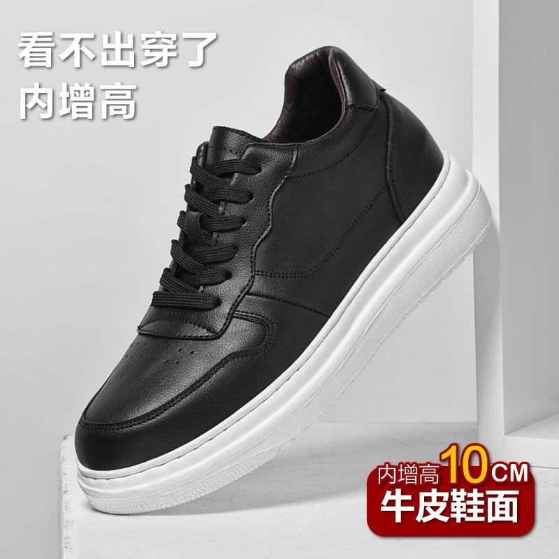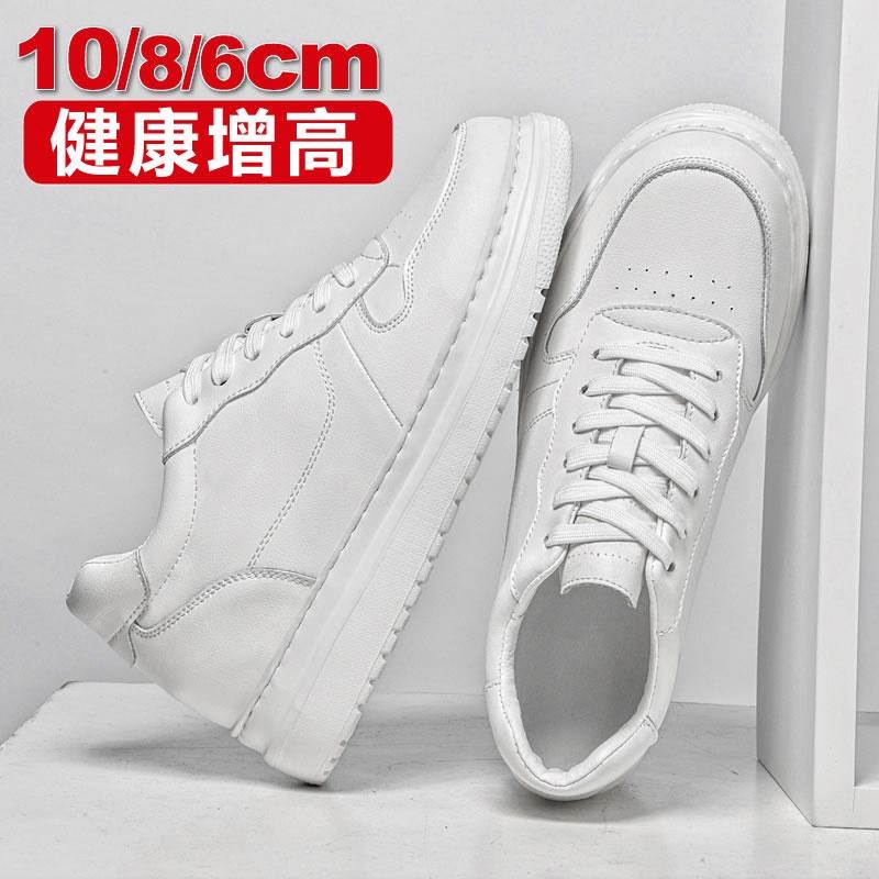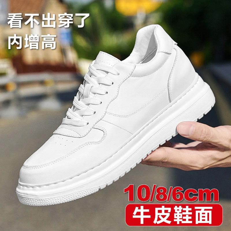牛皮增高鞋男8cm白鞋轻便透气真皮休闲板鞋内增高男鞋10cm小码36