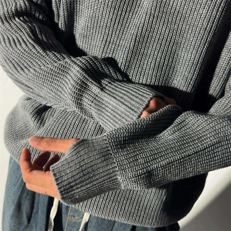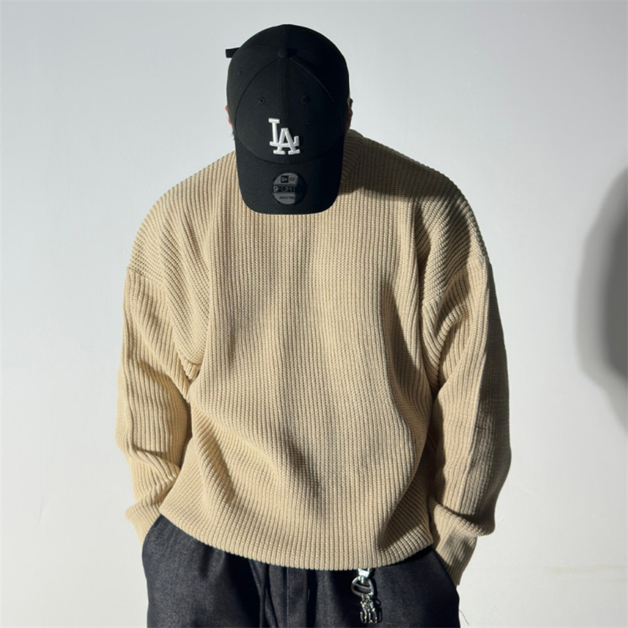 MRDONG韩国男装代购潮流套指慵懒6色圆领休闲宽松落肩针织衫毛衣