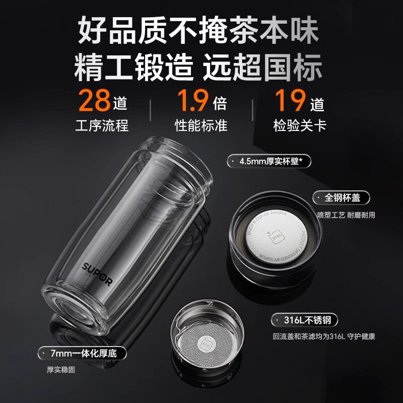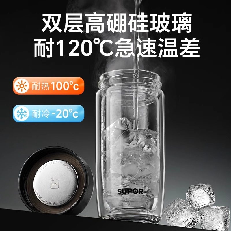 苏泊尔玻璃杯鹅蛋杯双层隔热男士家用耐高温泡茶大容量便携水杯子