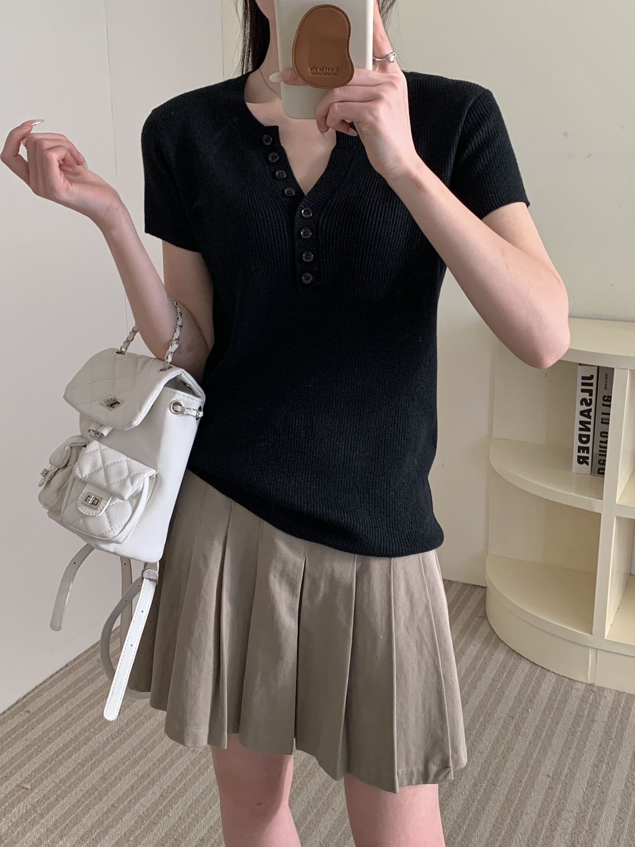 只有一件桑蚕丝羊毛针织短款圆领针织衫薄款毛衣女款套头薄款短袖