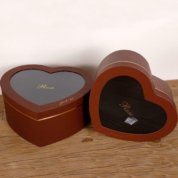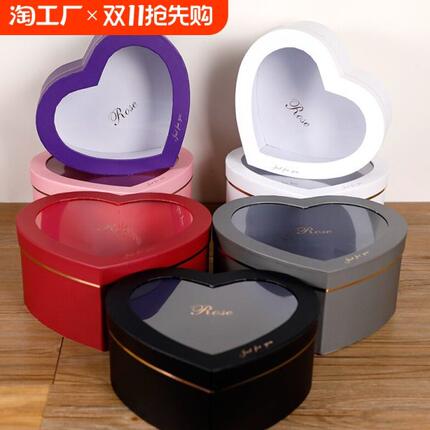 套开花盒包装盒情人节鲜花心形烫金镂空玫瑰花束花艺二礼盒窗透明