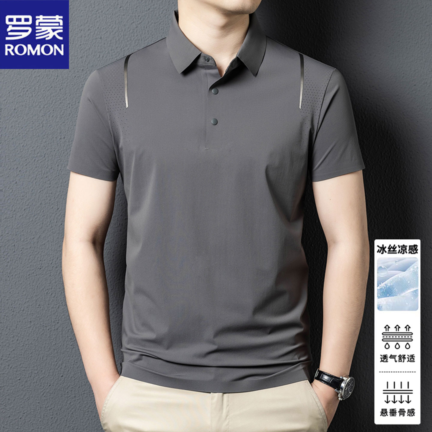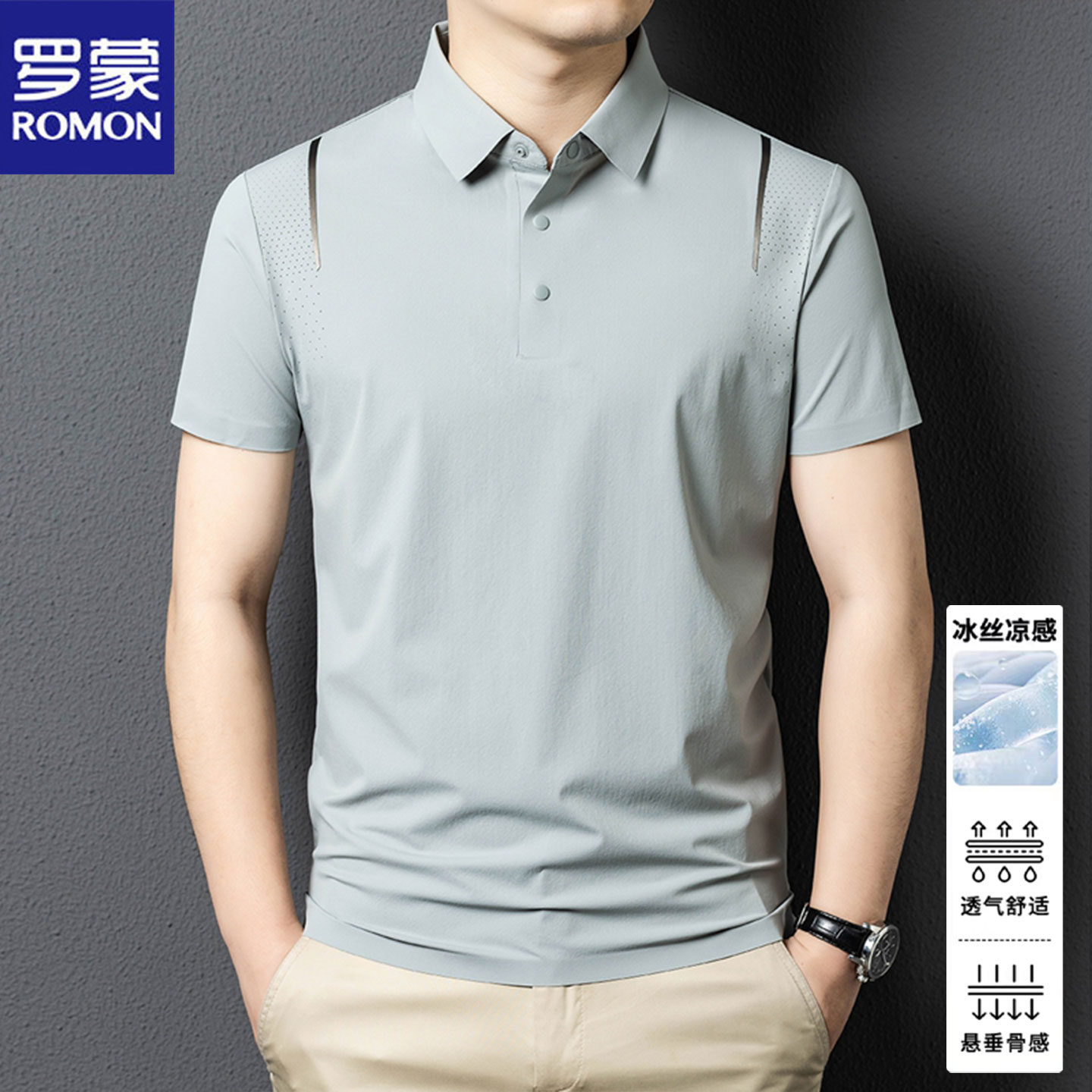 罗蒙夏季男新款高端正品商务休闲短袖POLO衫T恤冰丝薄款透气上衣