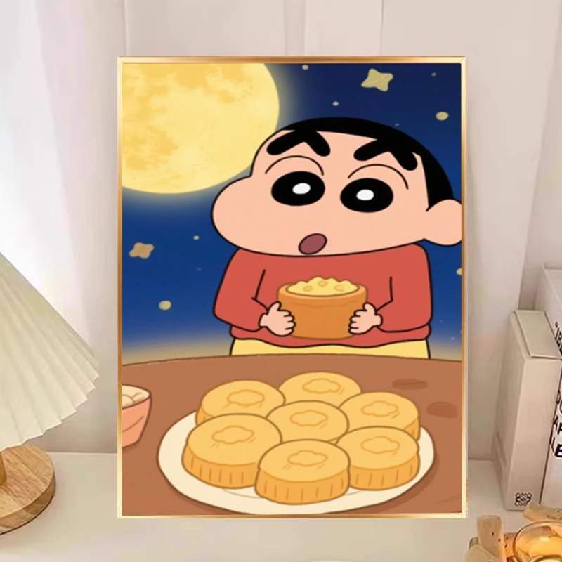 2025年新钻石画款蜡笔小新田园赏月迎中秋手工diy客厅卧室粘贴画