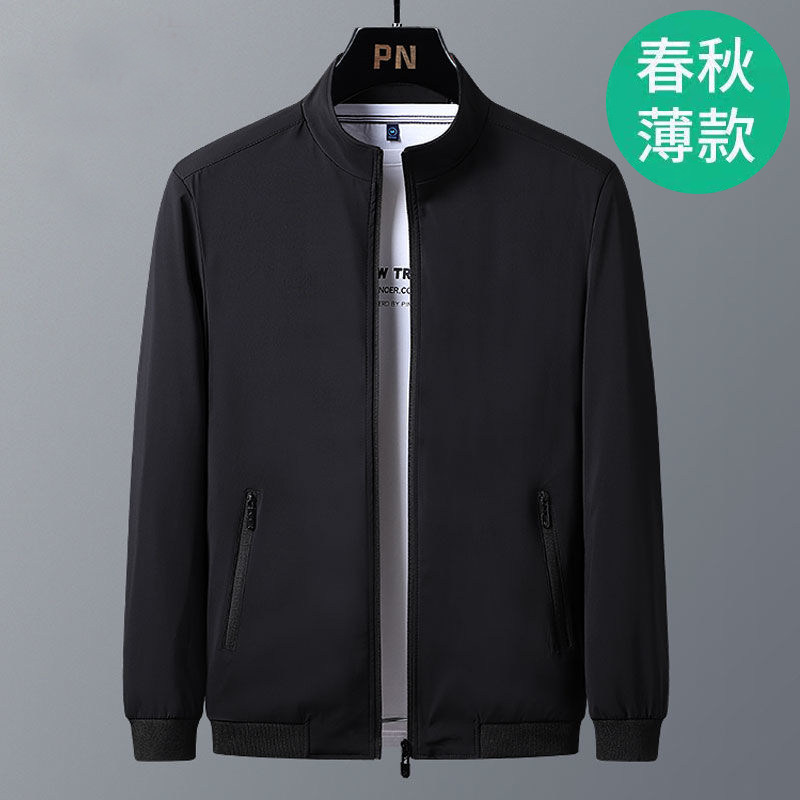 2025中老年男士外套春秋款休闲立领夹克衫纯色宽松薄款爸爸装上衣