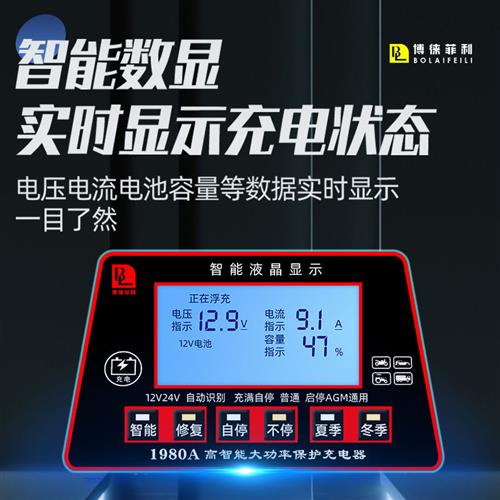 汽车电瓶纯铜充电器12v24v摩托全自动多功能快大功率蓄电池充电机