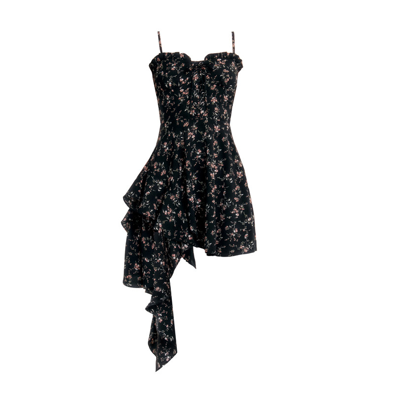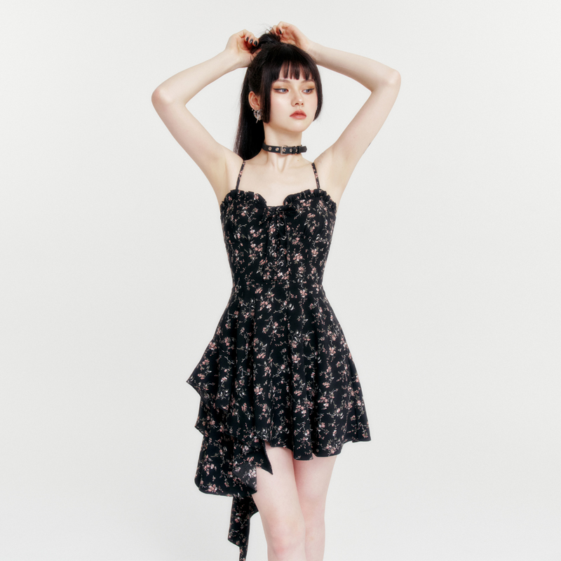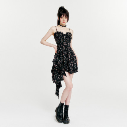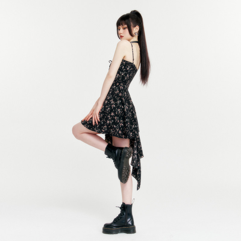 VOCK 浪漫俘获 暗黑纯欲少女度假不规则碎花显瘦吊带裙连衣裙辣妹