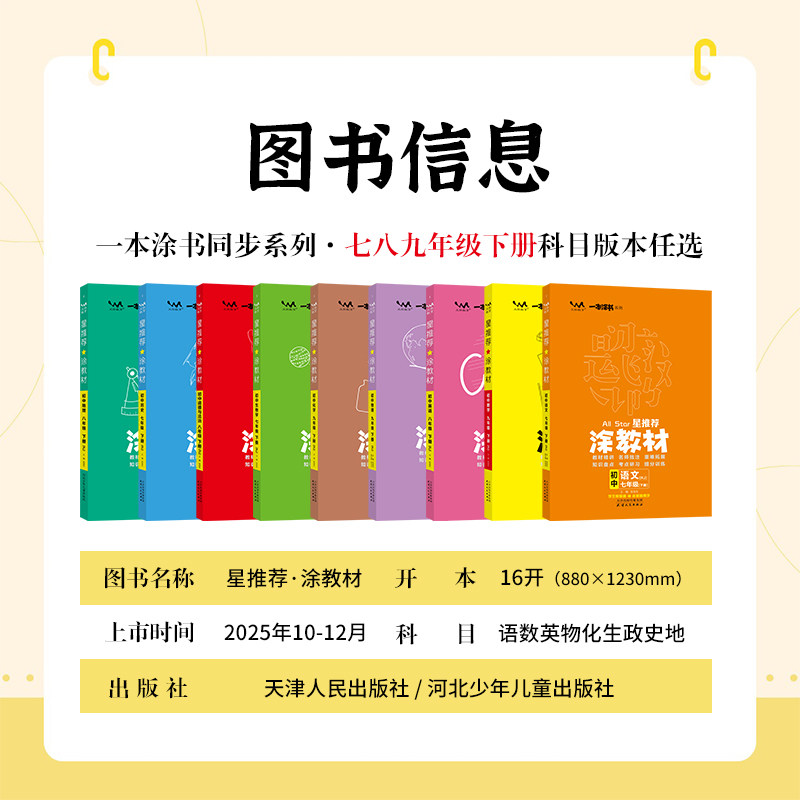 2026春新版涂教材初一二三七八九年级人教版下册 北师大版青岛版外研版湘教9科任选 教辅辅导资料书 基础知识点大全同步辅导教材书
