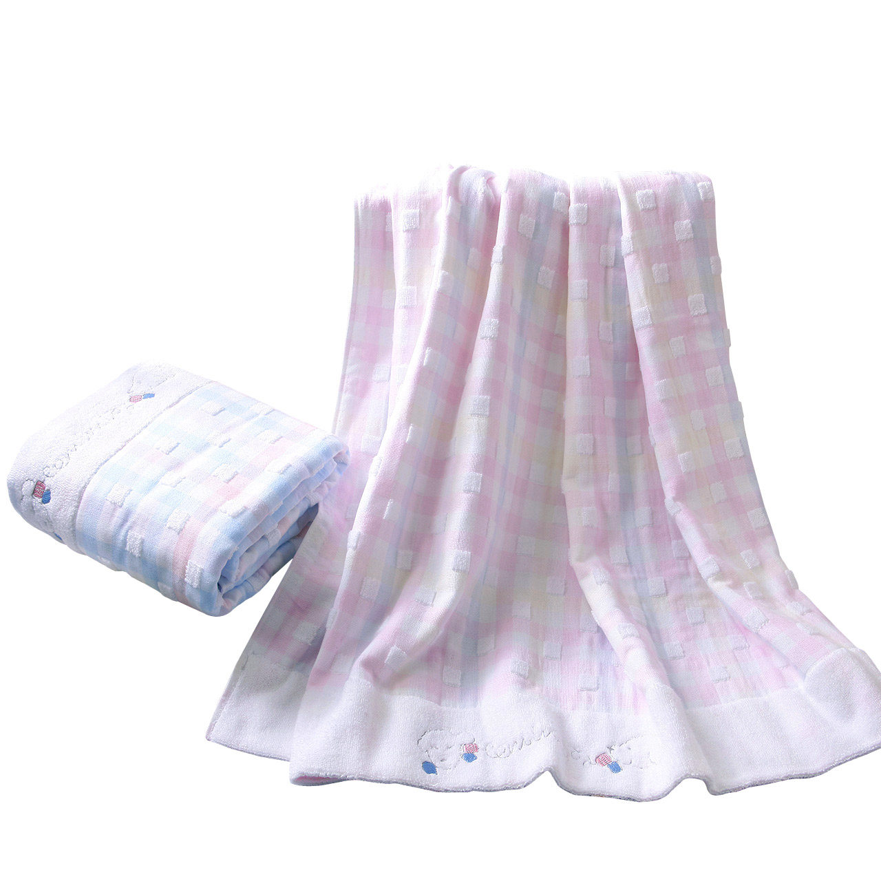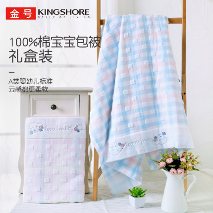 金号纯棉儿童毛巾被浴巾双层纱布无捻卡通绣花柔软舒适礼盒装洗浴