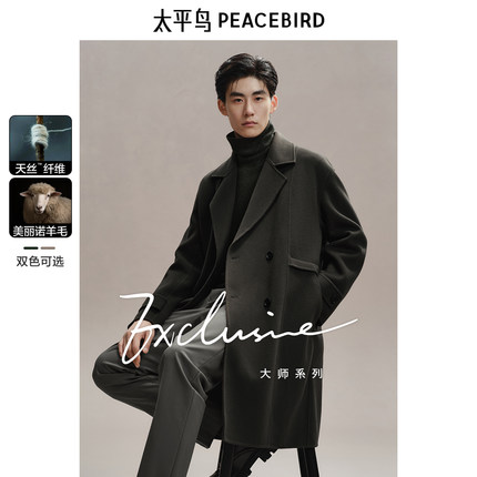 【兰精天丝】太平鸟男装双面教父毛呢大衣长款年冬羊毛外套