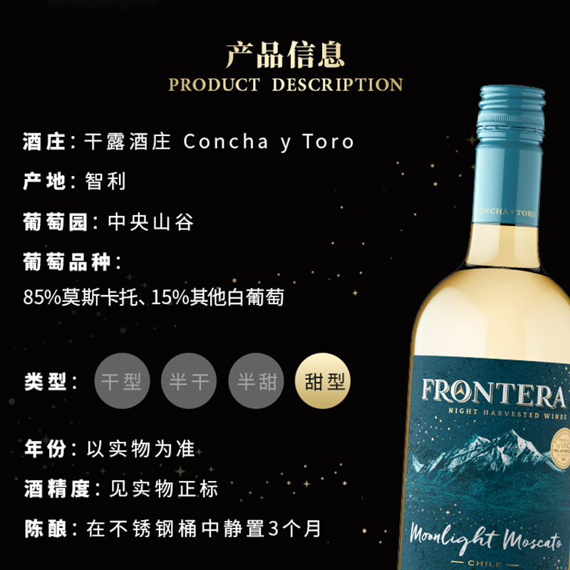 【自营】干露红魔鬼缘峰莫斯卡托甜白葡萄酒原瓶进口智利名庄红酒