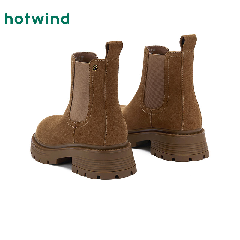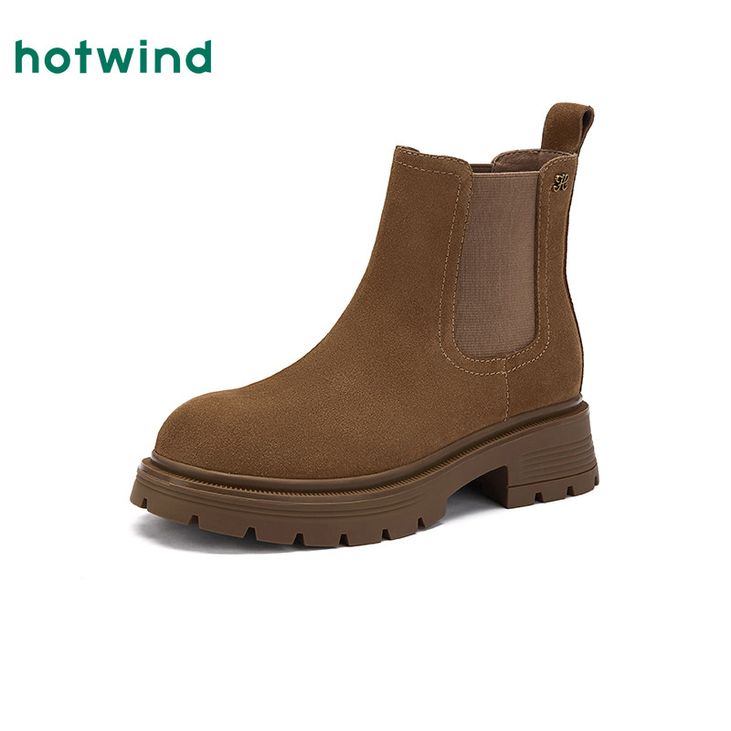 热风棕色马丁靴女2025年冬季新款美拉德短靴西部牛仔靴休闲靴子