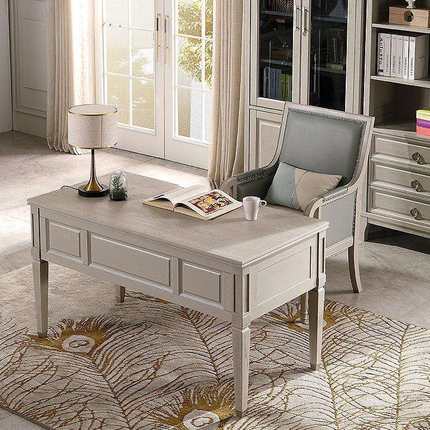 美式实木办公书桌书房简约轻奢橡木电脑桌书椅1.4米写字台桌组合