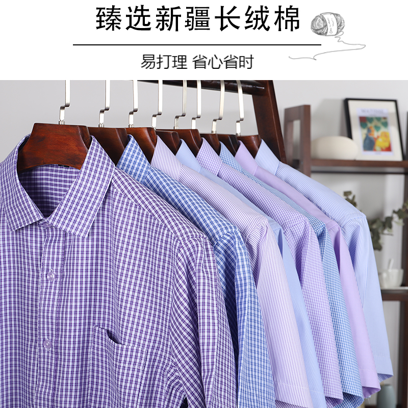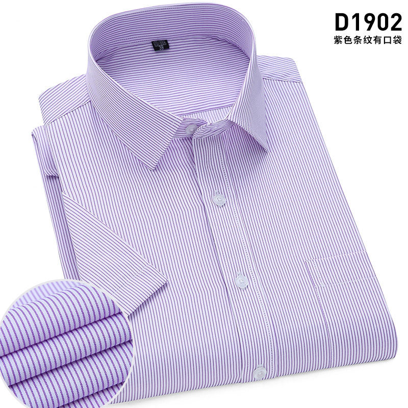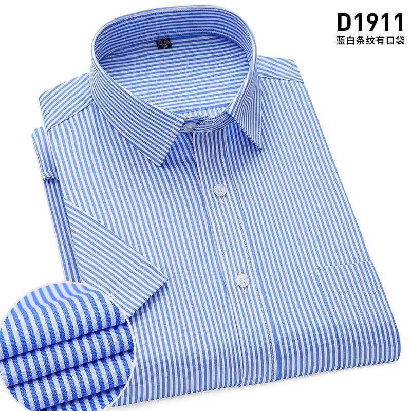 短袖衬衫男浅蓝细条纹商务休闲工作服衬衣男职业工装纯色打底寸衫