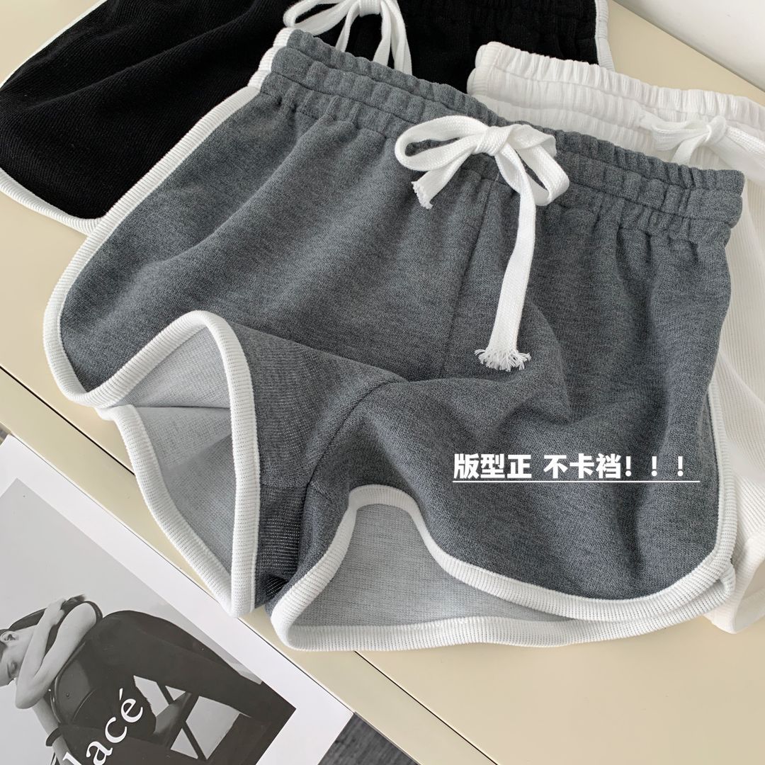 灰色高腰运动短裤女夏外穿显瘦百搭时尚休闲裤居家抽绳松紧带热裤