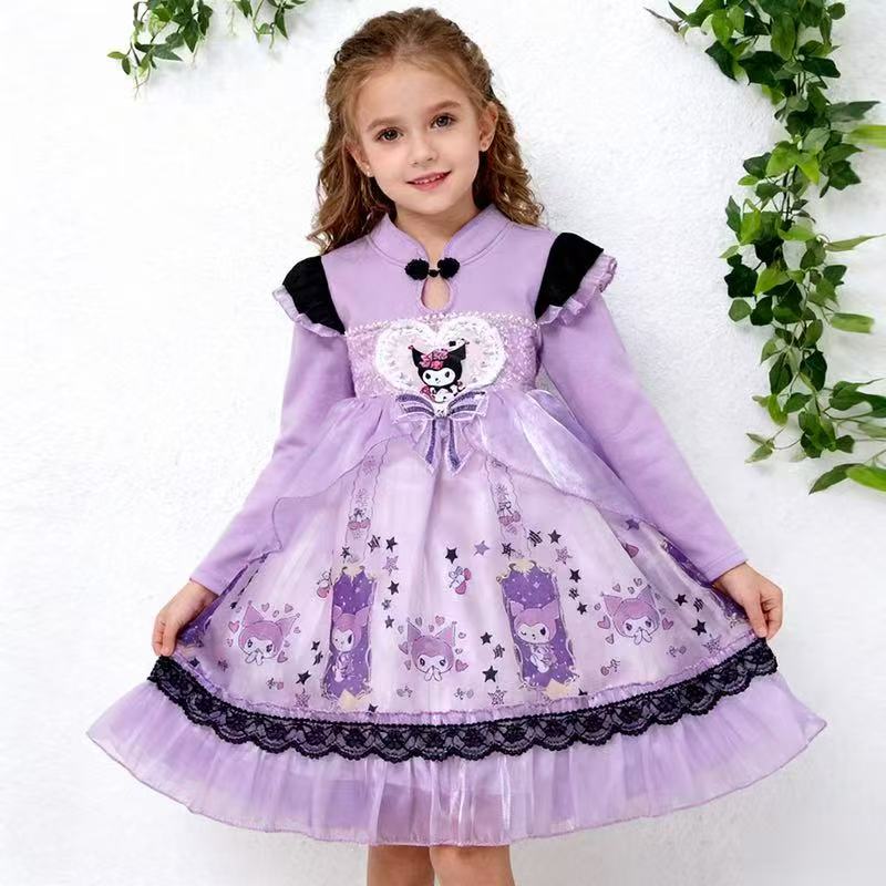 女童库洛米公主网纱连衣裙春秋2025新款纯棉女孩洛丽塔COS紫色裙6
