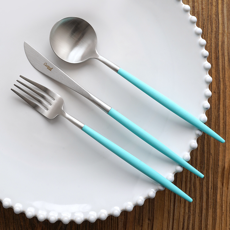 葡萄牙Cutipol土耳其蓝银不锈钢牛排刀叉勺筷子套装结婚送礼礼盒