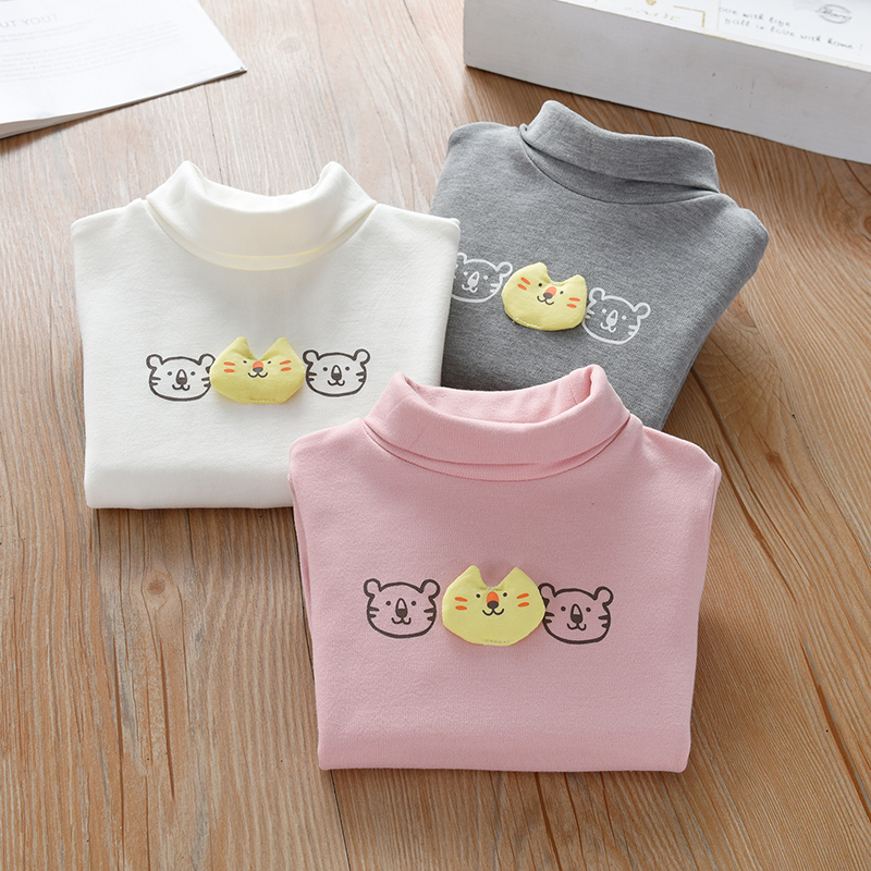 女童长袖T恤2025新款秋装春秋儿童宝宝半高领卡通韩版上衣打底衫