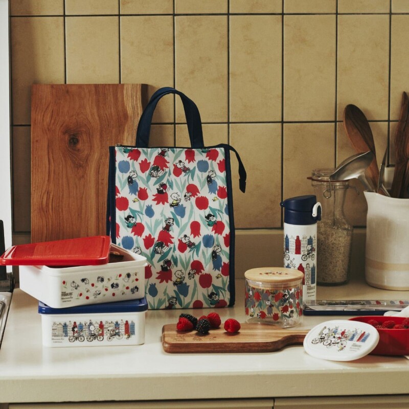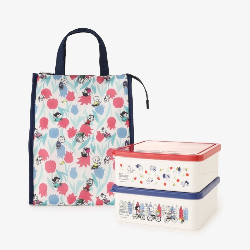 日本购回snoopy卡通大号双层塑料野餐饭盒便当盒水果盒带保温袋